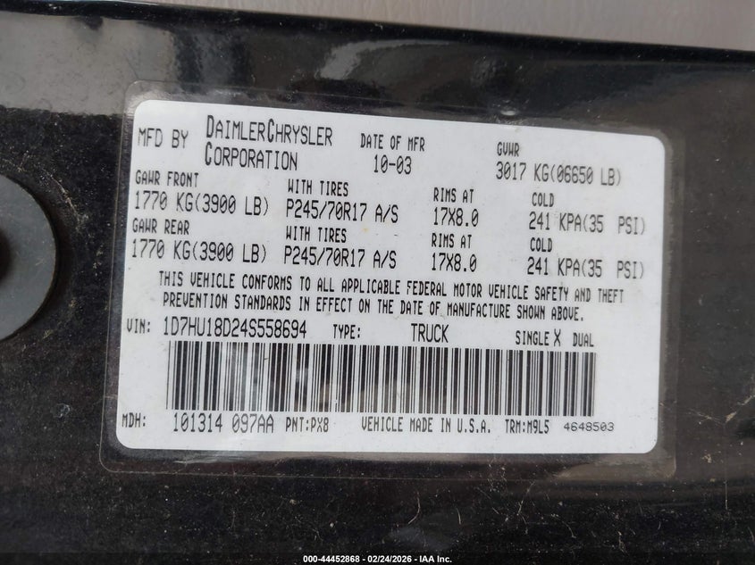 VIN number: