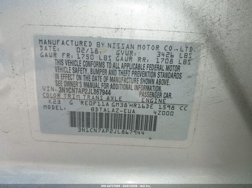 VIN номер:
