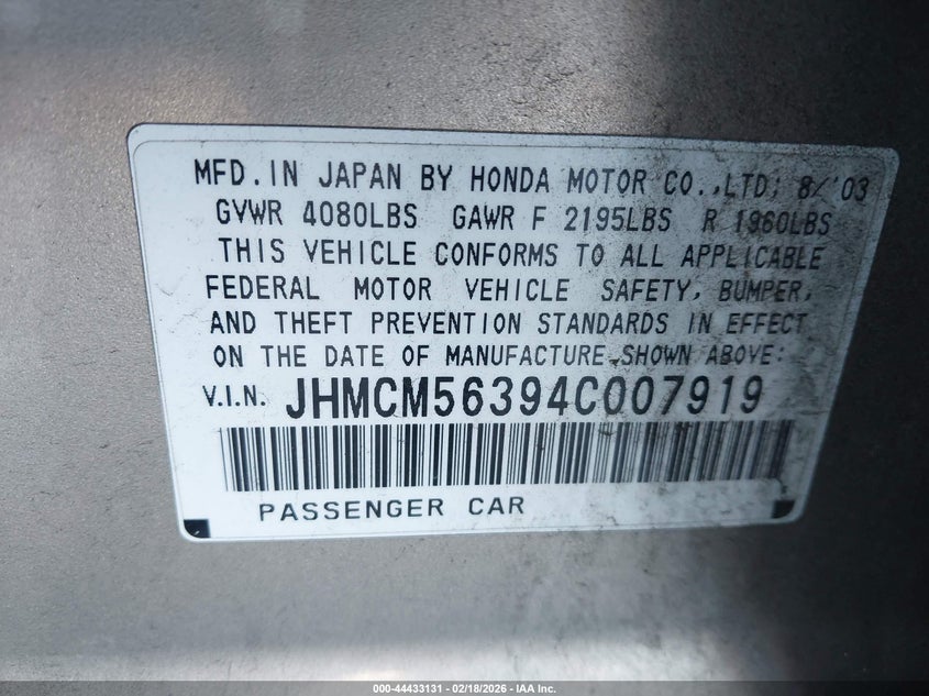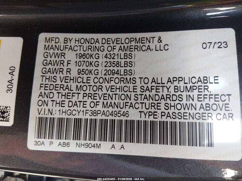 1HGCR2F86FA019345
