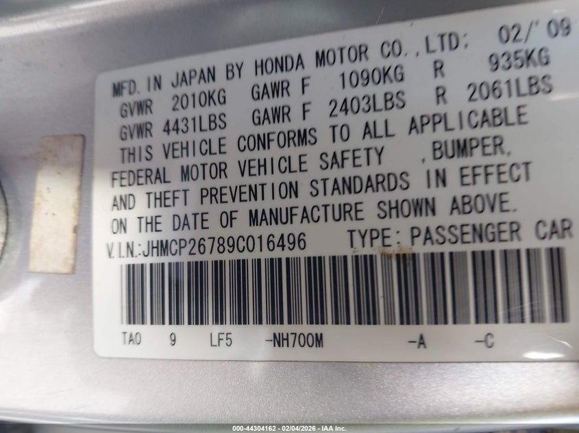 1HGCP26778A033951